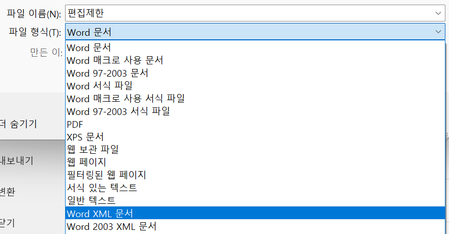 1. 편집 제한 문서를 열어서 XML 파일로 저장한다.