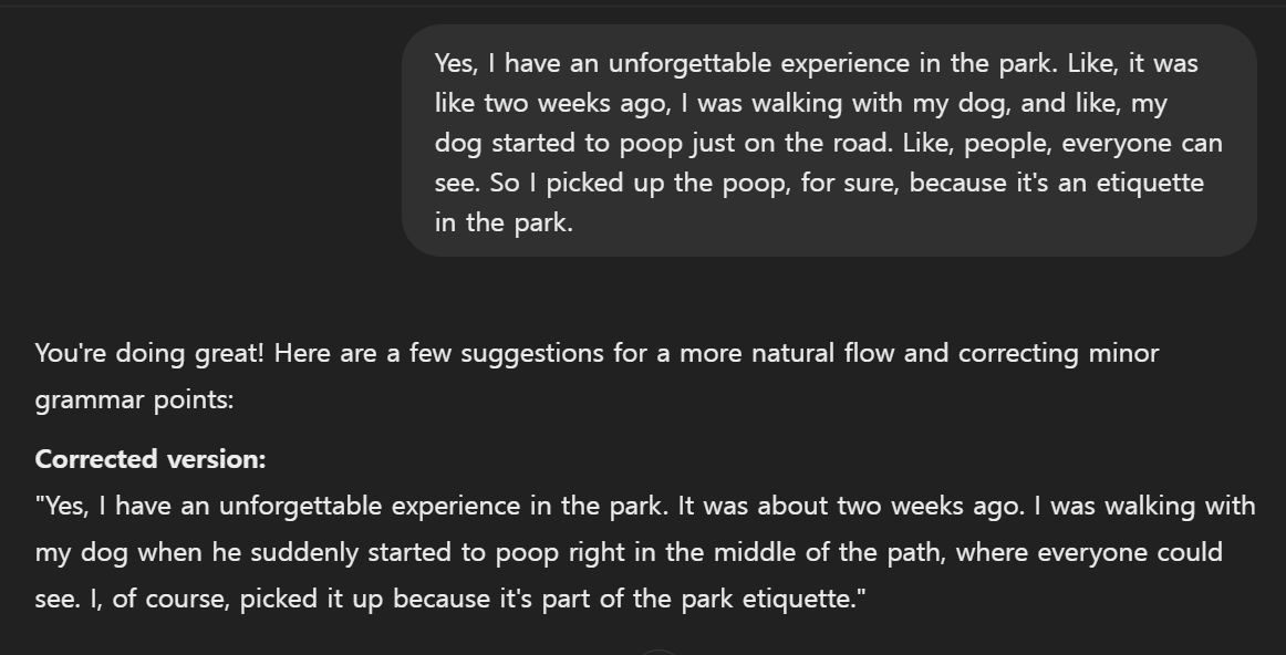 필러 문장 등은 거의 사용하지 않았고 내 말투 그대로 말하고자 했다.