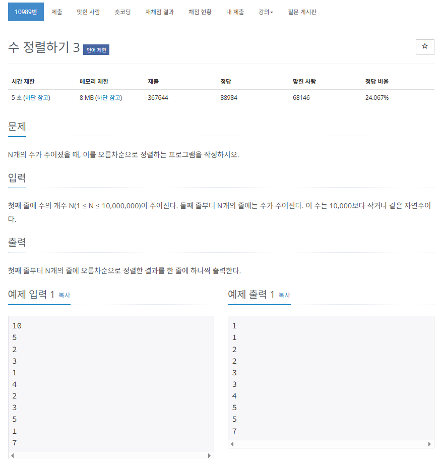 🛠 10989번의 정석 풀이: 계수 정렬 (Counting Sort)
