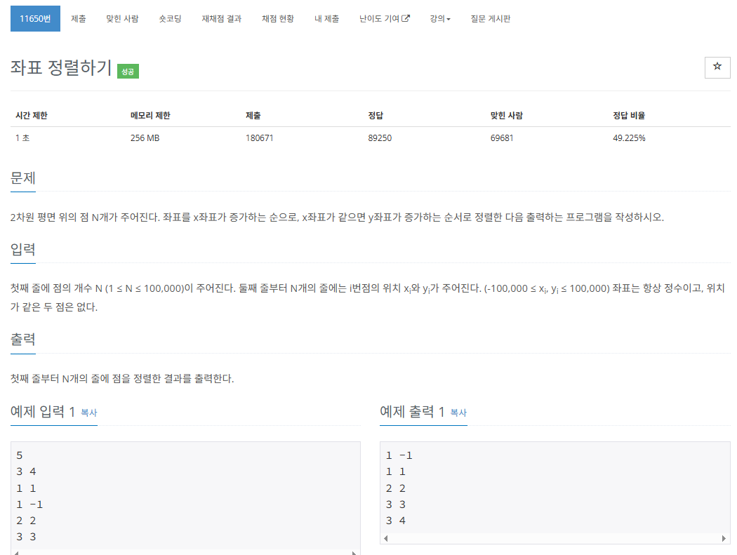# 정렬 로직 (기본 튜플 정렬: x좌표 우선, y좌표 차선)