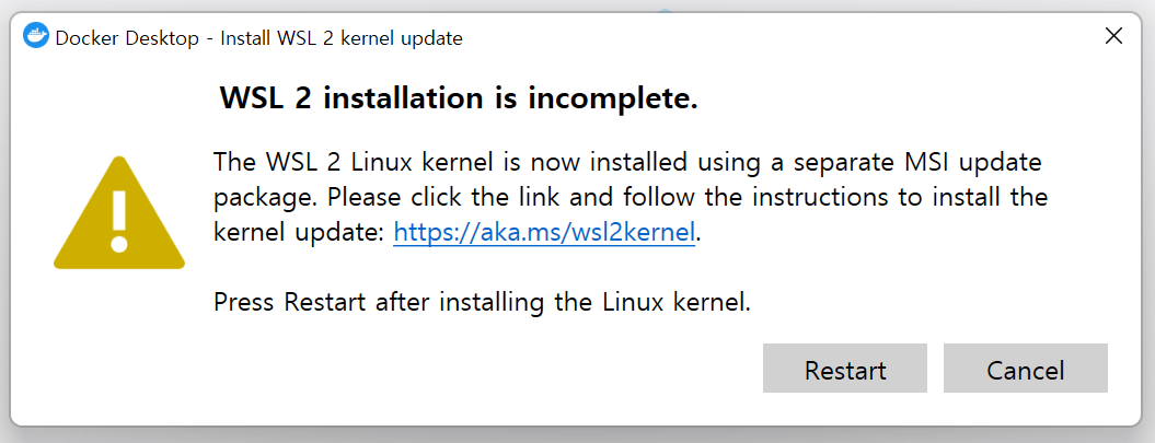 WSL 2 installation is incomplete